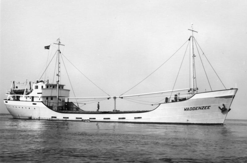 Leeuwarder courant 15-04-1959: „WADDENZEE" op proefvaart op zomerse Waddenzee. Gistermorgen „tegen koffietijd" werden op de Nieuwe Willemshaven te Harlingen de trossen losgemaakt van de nieuwste aanwinst van rederij Holwerda te Heerenveen, de 730 ton d.w. metende kustvaarder „Waddenzee". Met een groot aantal genodigden heeft het op de Waddenzee — hoe kan het ook anders-- een geslaagde proeftocht gemaakt. De zon en de weldadige warmte maakten het verblijf op het dek tot een waar genoegen De „Waddenzee" is de grootste tot dusver bij de scheepswerf „Harlingen" gebouwde kustvaarder. Het schip is 54.50 m lang, 8.50 m breed, terwijl de holte 3.50 m bedraagt. In de machinekamer staat een 525 pk MWM motor opgesteld, waarmede tijdens de proefvaart een snelheid van ca. 10 mijl werd bereikt. De „Waddenzee" is uitgerust met richtingzoeker, echolood en radio-telefonie. Commodore van de Holwerda-vloot is de heer Hein Holwerda.
