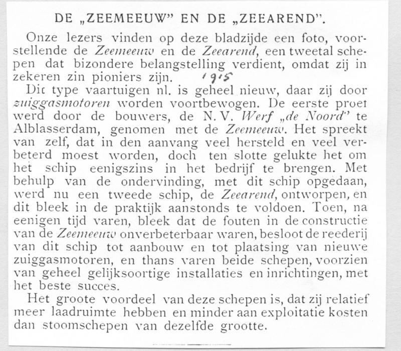 Raad voor de Scheepvaart. ZEEAREND. In de gisteren gehouden zitting heeft de Raad uitspraak gedaan betreffende het op zijde vallen en zinken van het motorschip ZEEAREND.