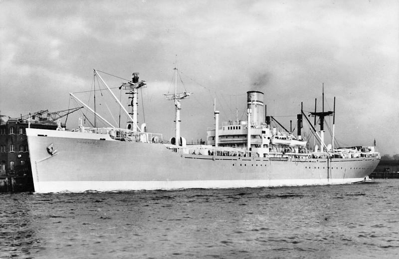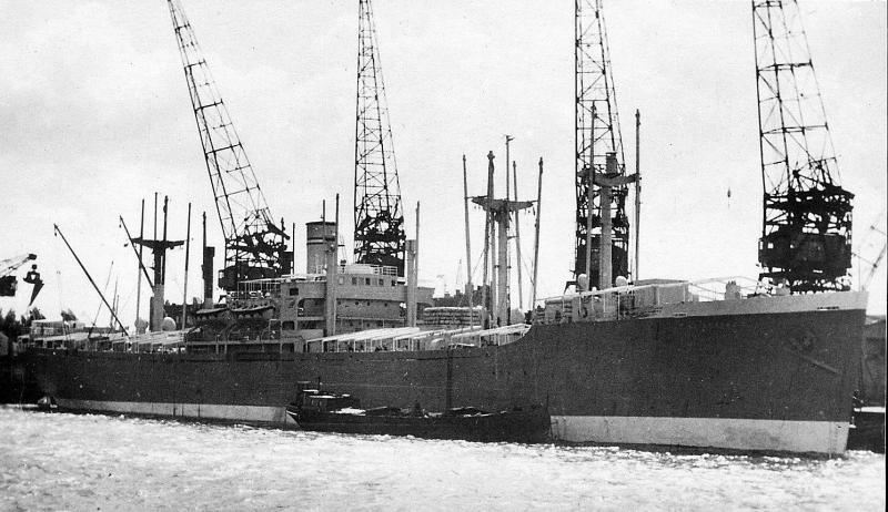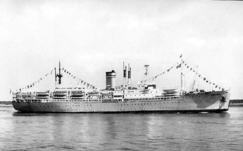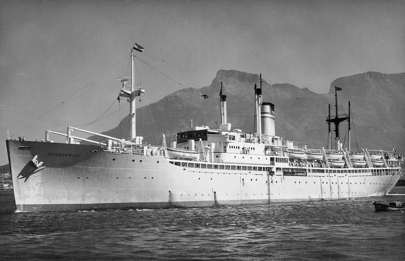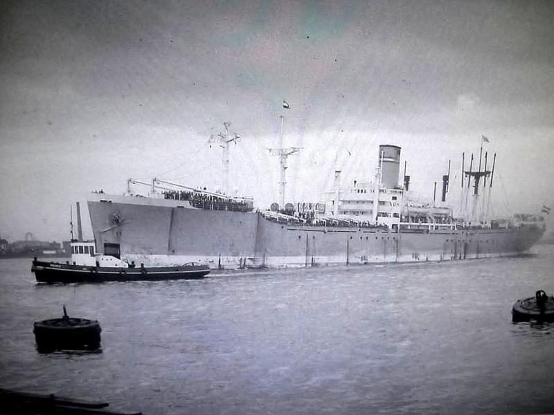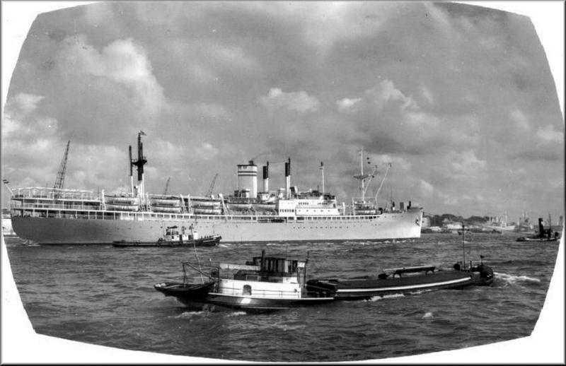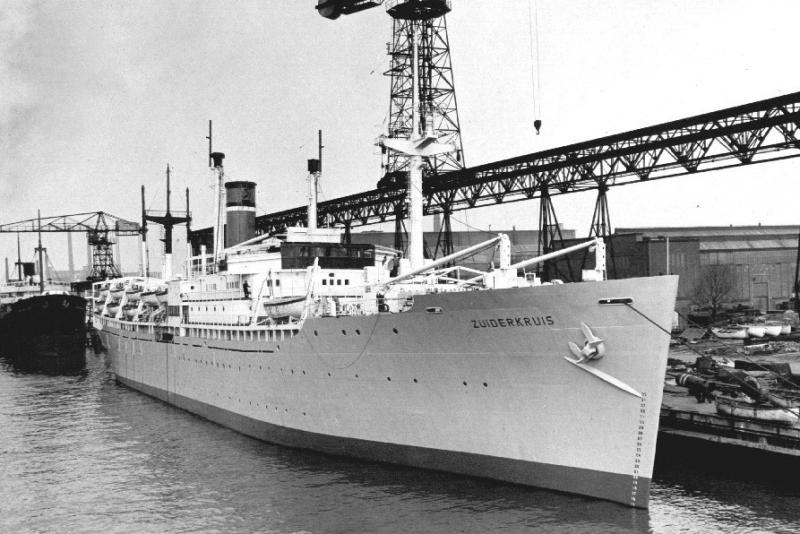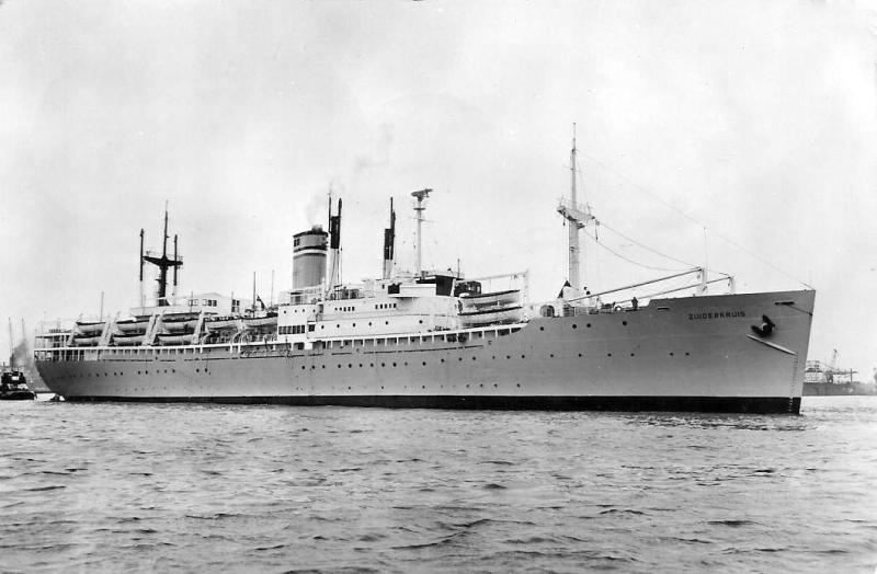 Na een aanvaring van de WATERMAN midden op de Atlantische Oceaan op 14 maart 1957 voer het schip terug naar Brest waar de 845 emigranten overstapten op de ZUIDERKRUIS (foto) |