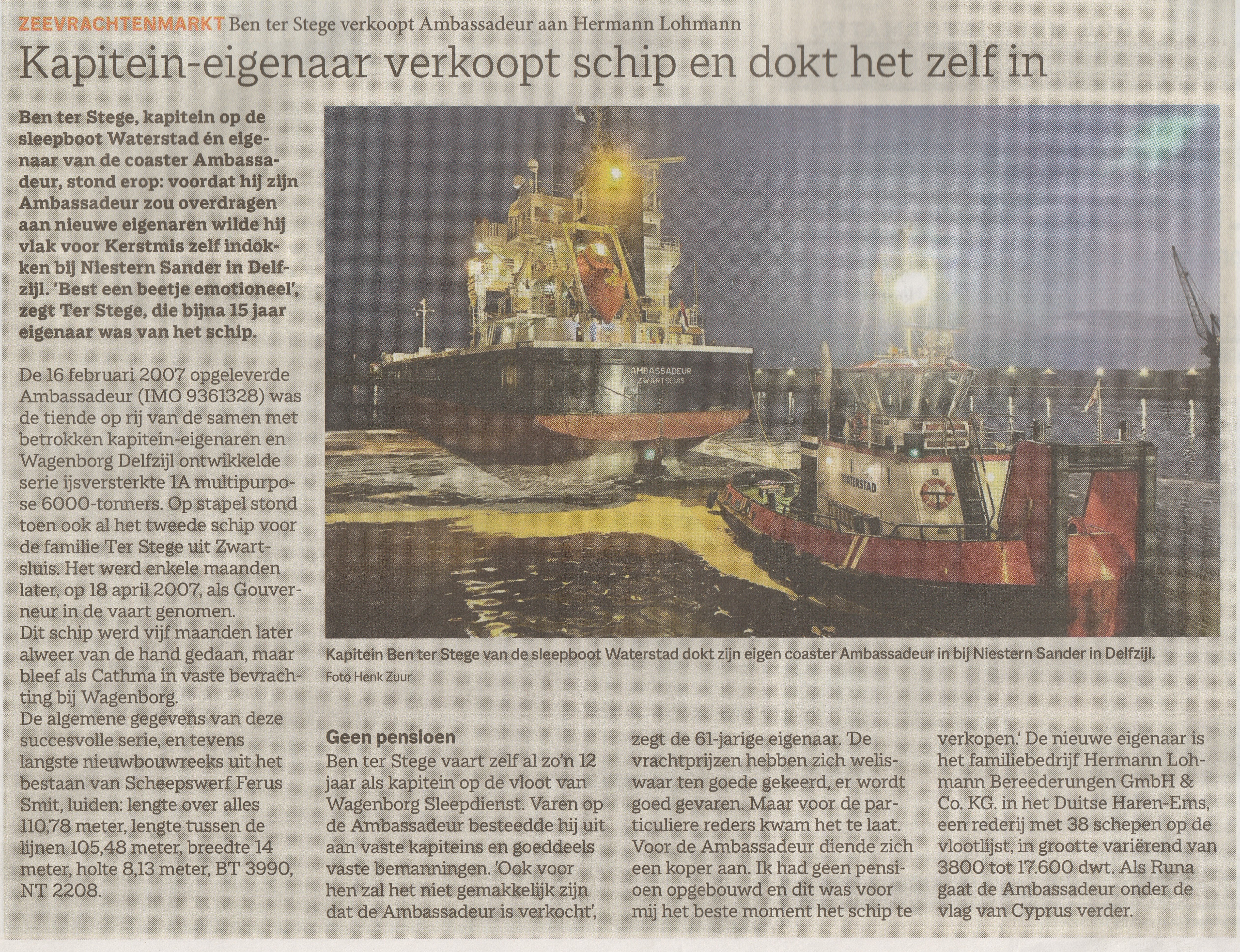 AMBASSADEUR van de bouwwerf naar Delfzijl op 12 februari 2007 |