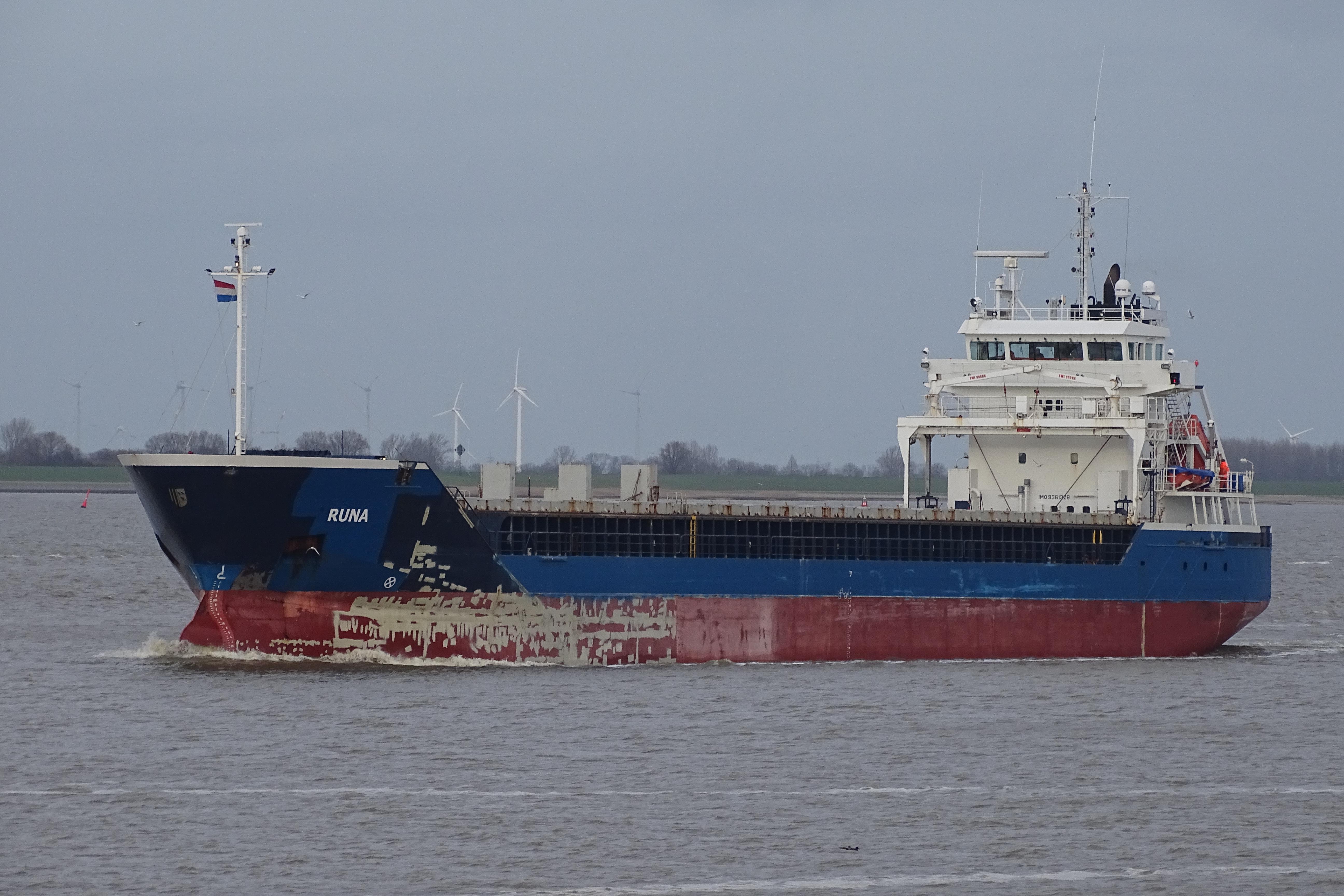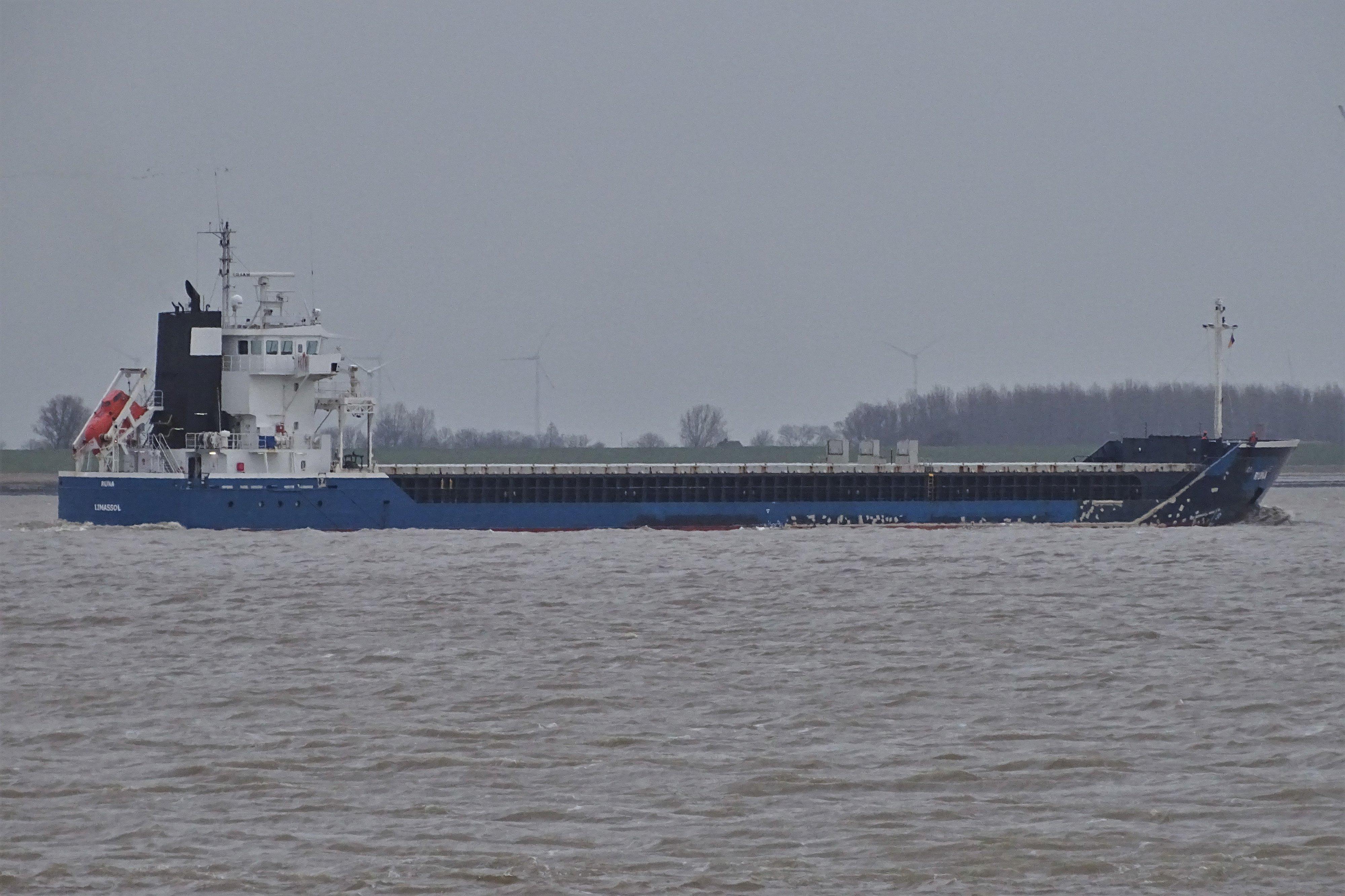 RUNA passeert 9 februari 2022 Oterdum rede nabij Delfzijl op weg naar Emden. |