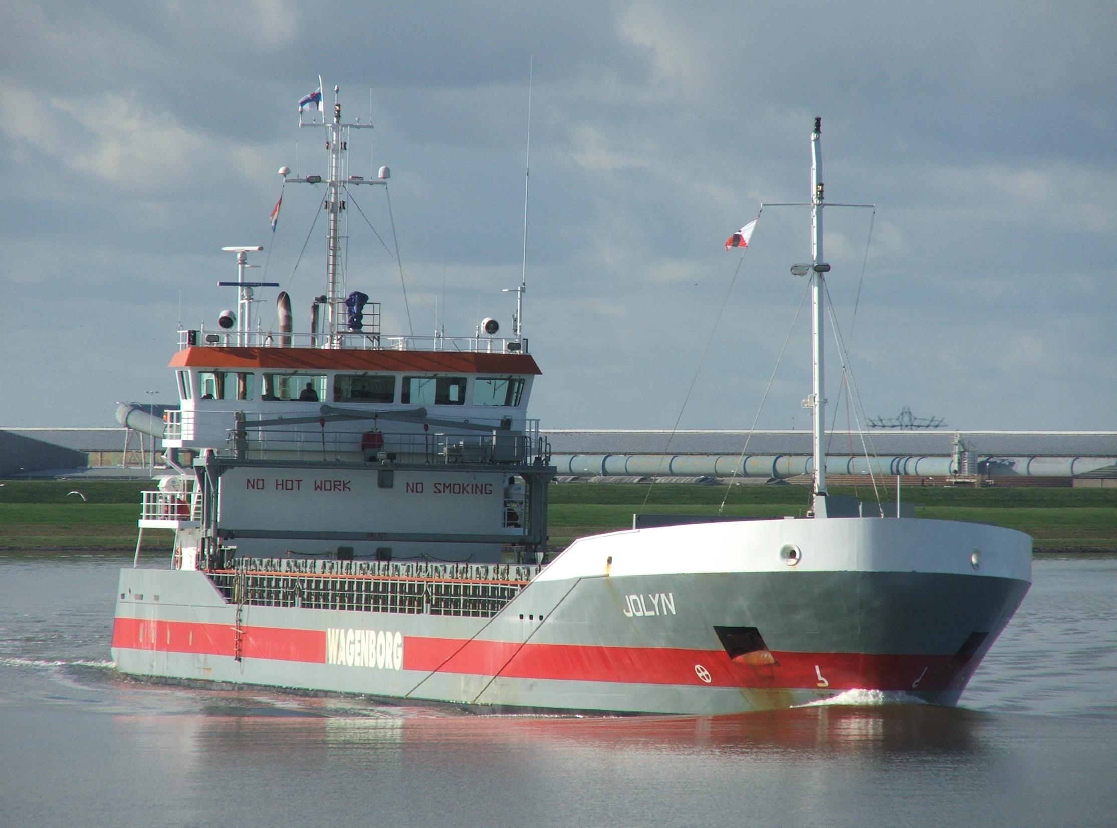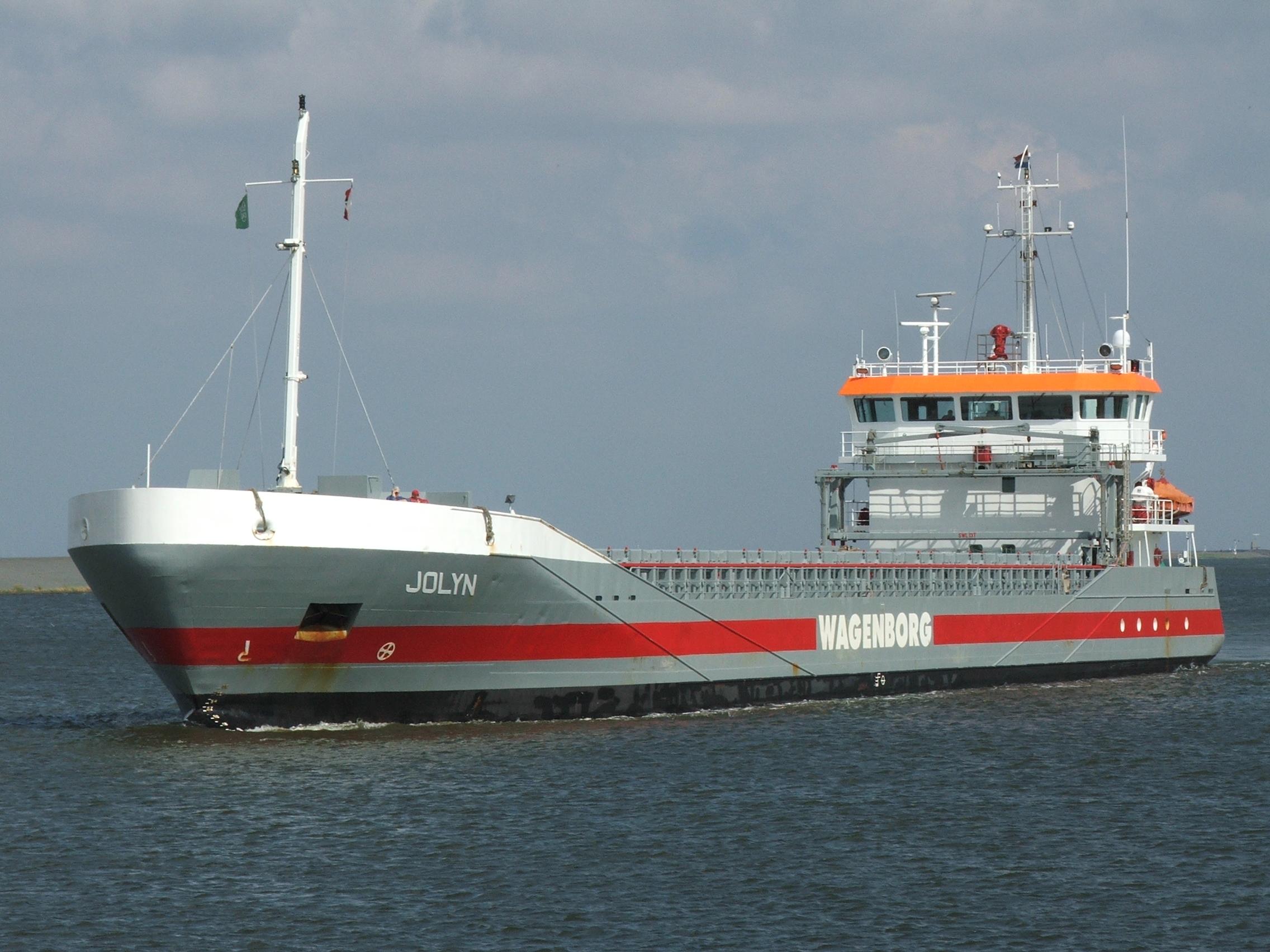JOLYN op de Eems uitgaand Delfzijl op 11-11-2014. |