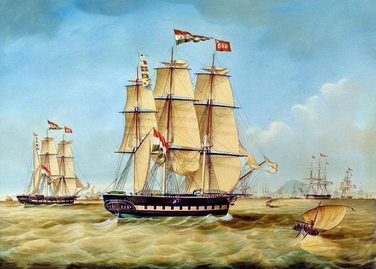 Archiefnr. 38-147, 17 juni 1836, fregat “De Vrienden”, kapitein Cornelis Willems Flens “p.p. kapt. H.M.Lens”, bestemming Batavia, boekhouder L.Bienfait & Zn, 27 bemanningsleden;