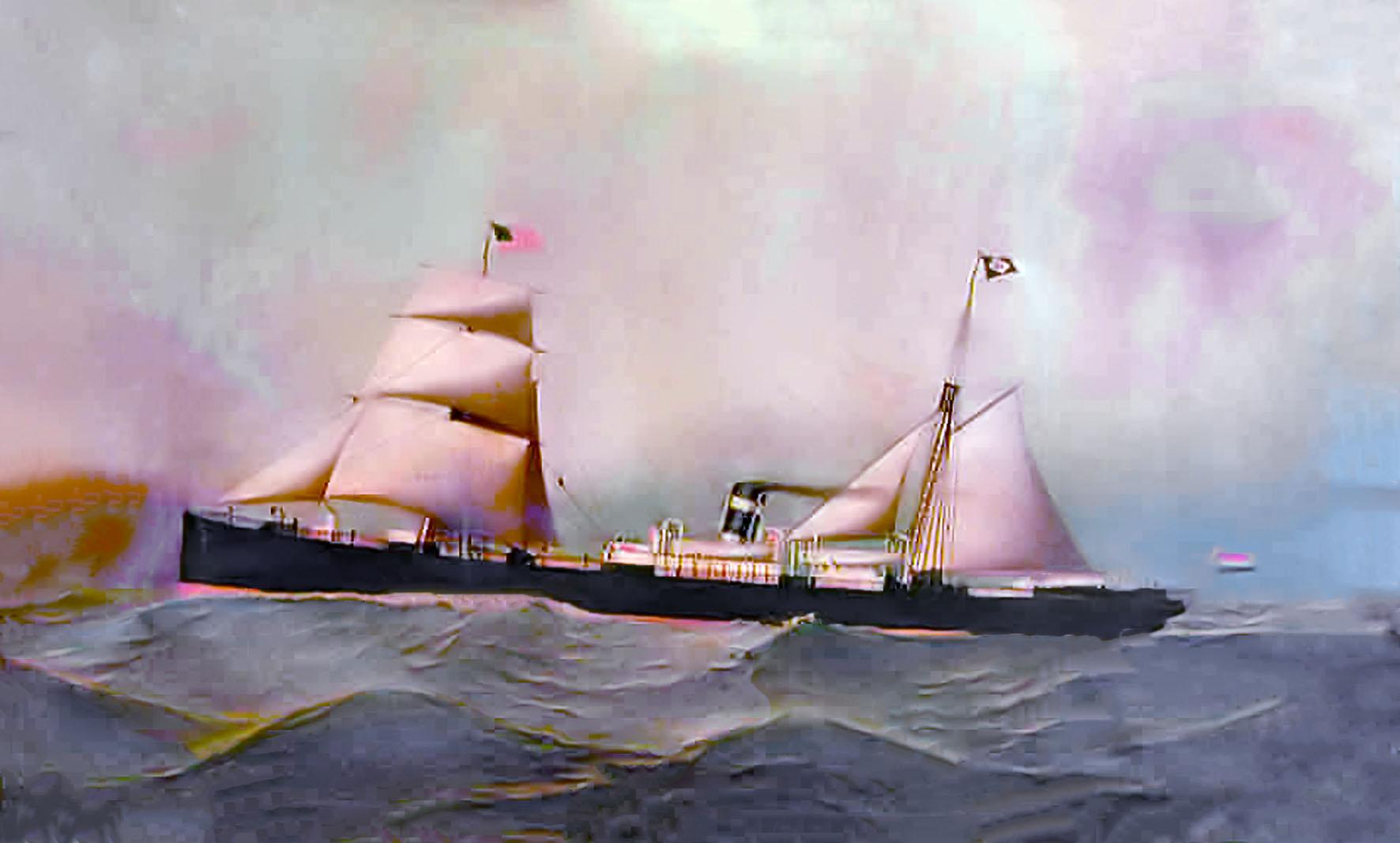 1883 van het ijzeren schroefstoomschip “Penelope”, gebouwd in 1872 te Middlesbro, 1600 ton o.m., varend voor de KNSM te Amsterdam;