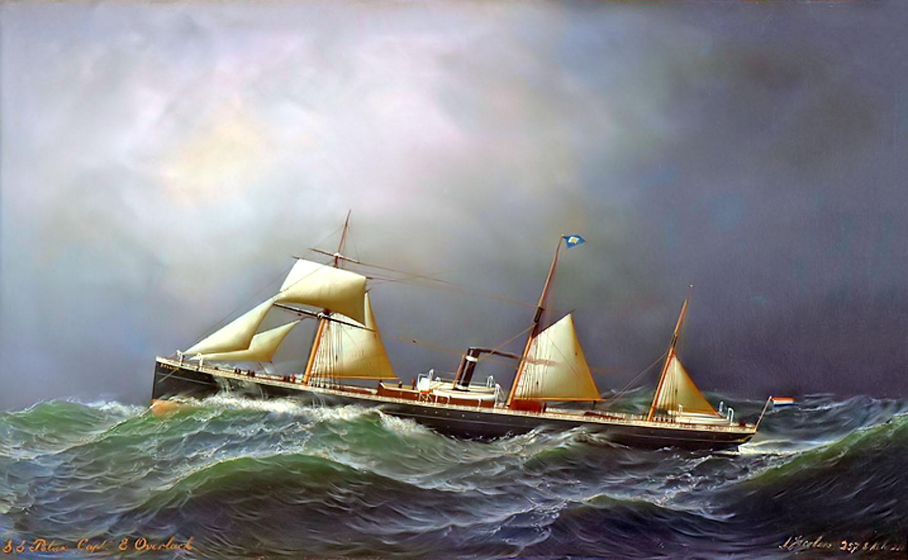 * 1889 van het ijzeren schroefstoomschip “Pollux”, gebouwd in 1870 aan de Clyde, 1512 ton o.m., varend voor de KNSM te Amsterdam.