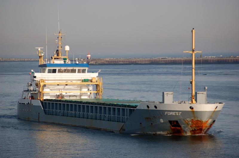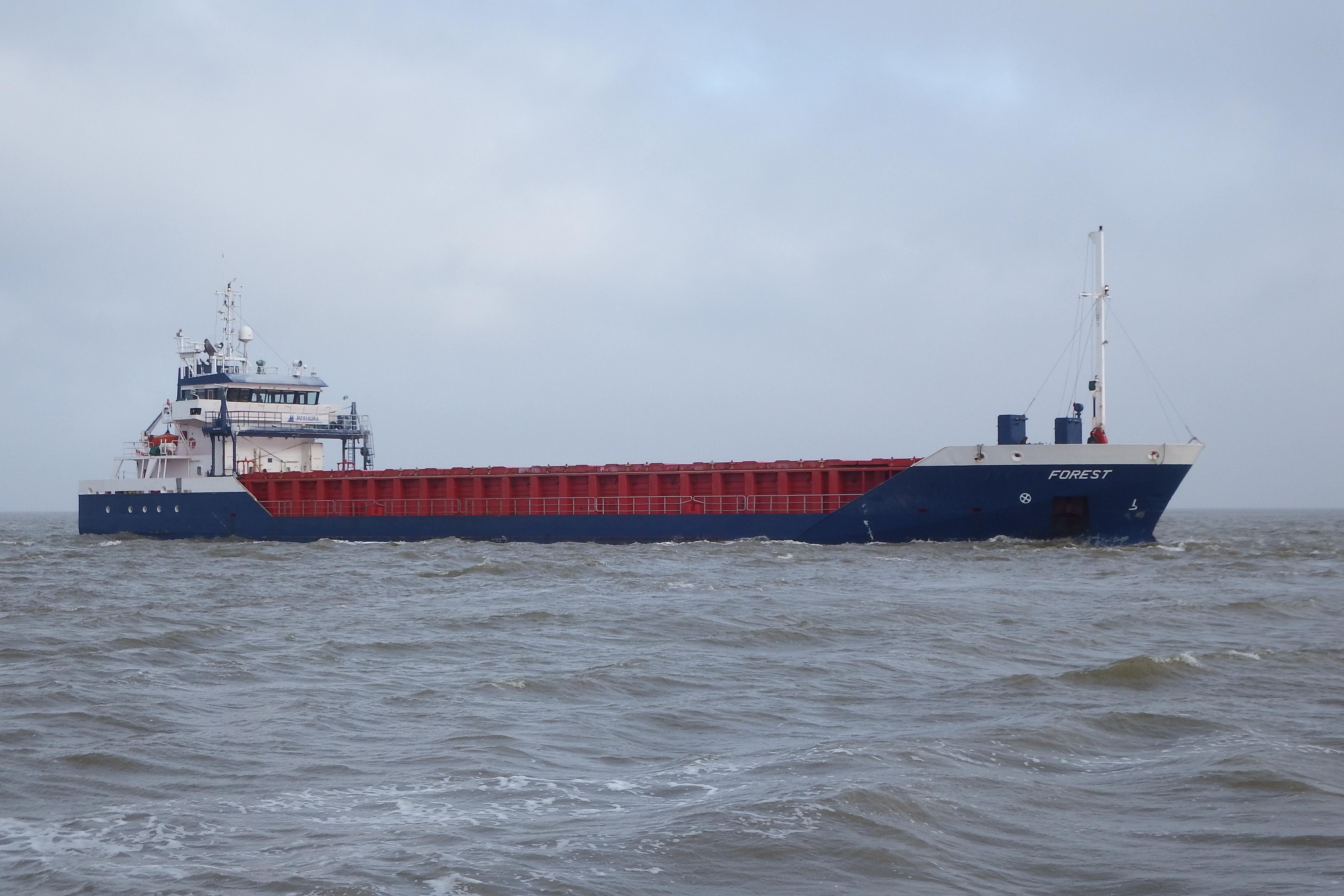 FOREST op de Eems inkomend de Eemshaven op 09-02-2015. |