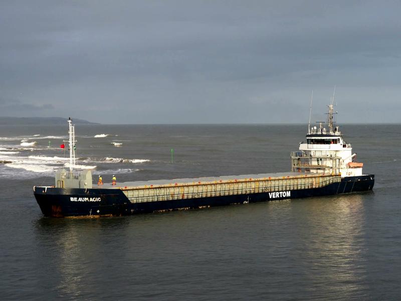 BEAUMAGIC op de Eems ingaand Delfzijl op 09-11-2013. |