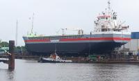 JADE op 6 juli 2025 op de werf bij K.N.S. te Delfzijl in de Wagenborg kleuren |